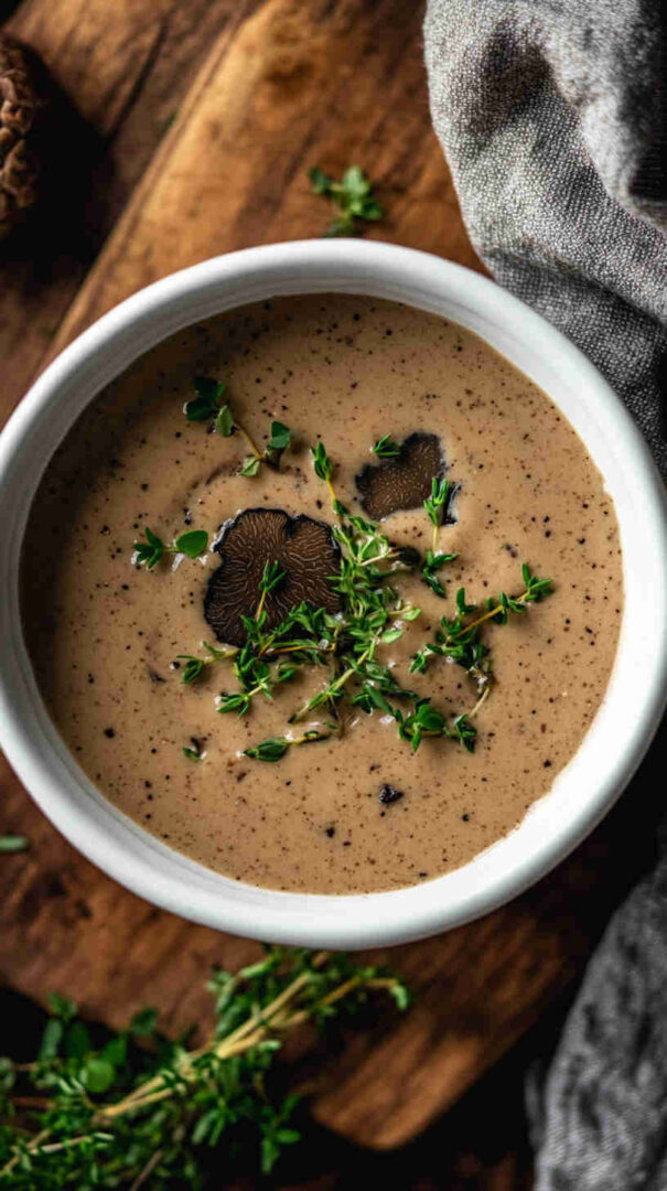 Luxurious, glossy truffle mushroom sauce—earthy, aromatic, and silky for steak, pasta, or polenta.