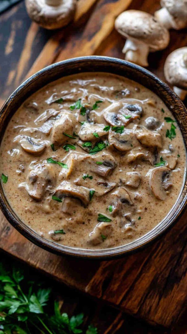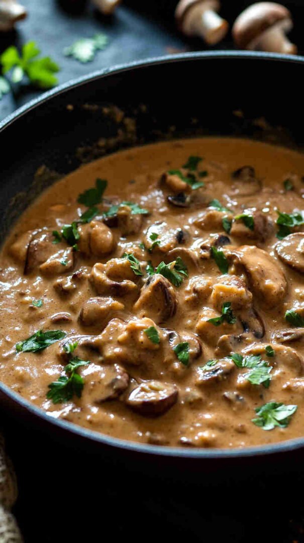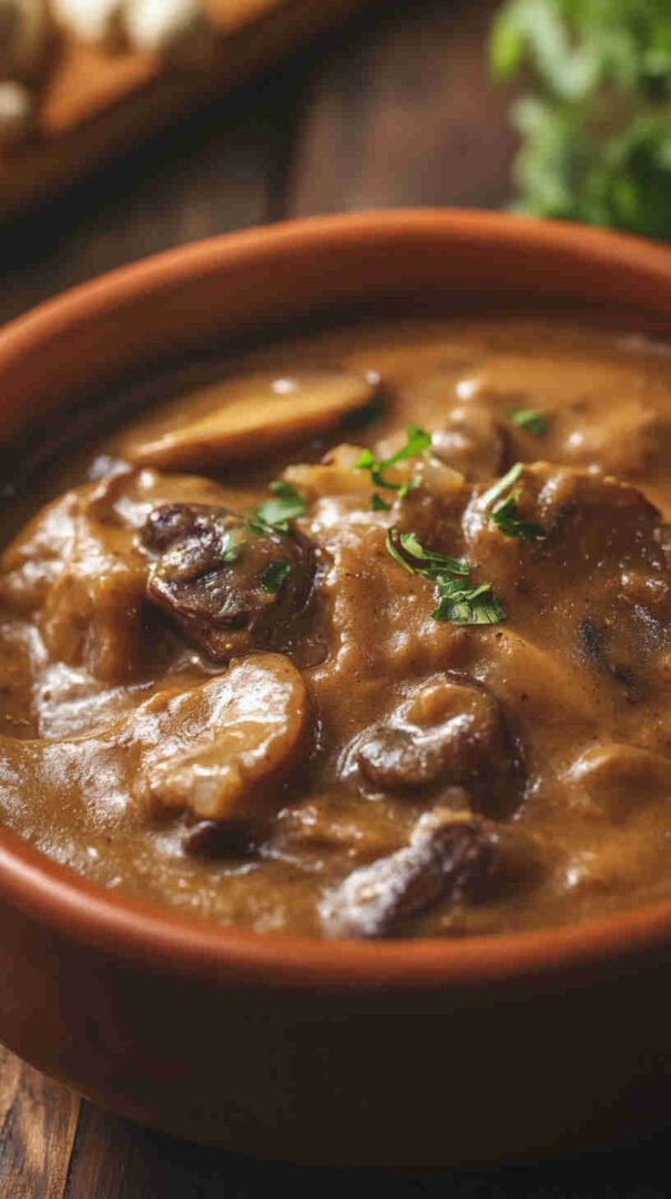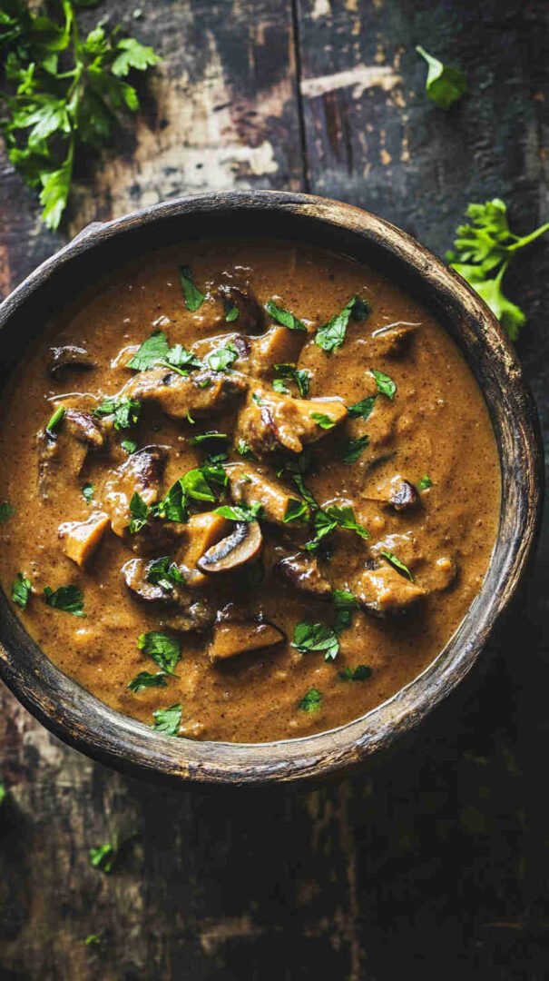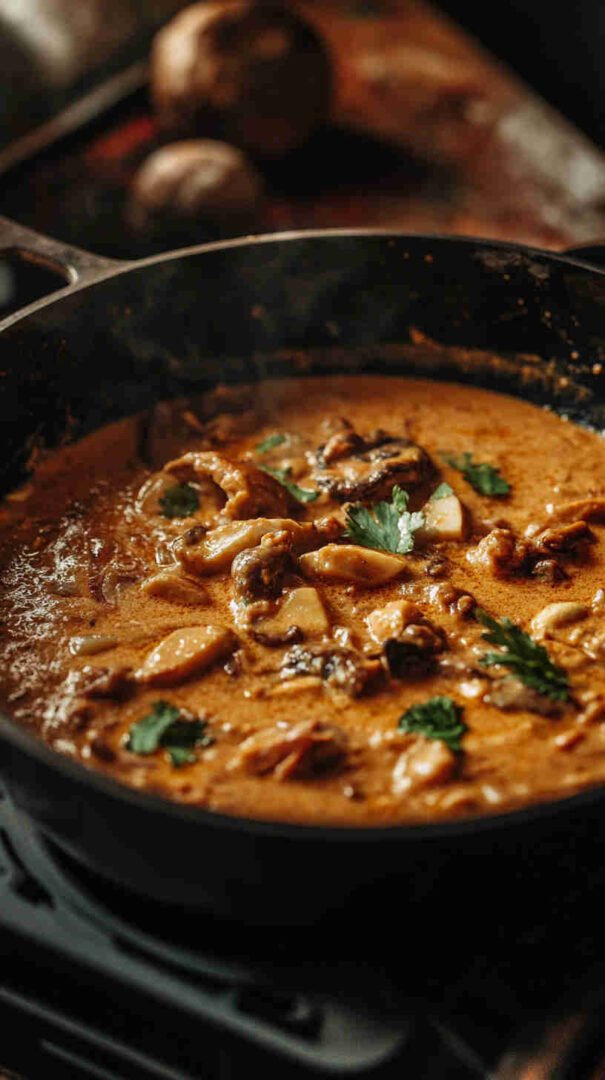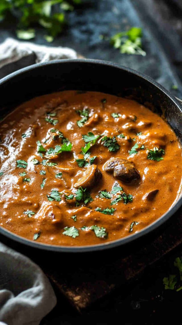 This Ugandan Groundnut Mushroom Sauce combines tender mushrooms with a velvety roasted peanut butter sauce, infused with tomatoes, onions, garlic, and warm spices. A comforting, hearty vegetarian dish inspired by Ugandan groundnut stews, perfect served over rice, matoke, or with fresh chapati for a truly satisfying African-inspired meal.