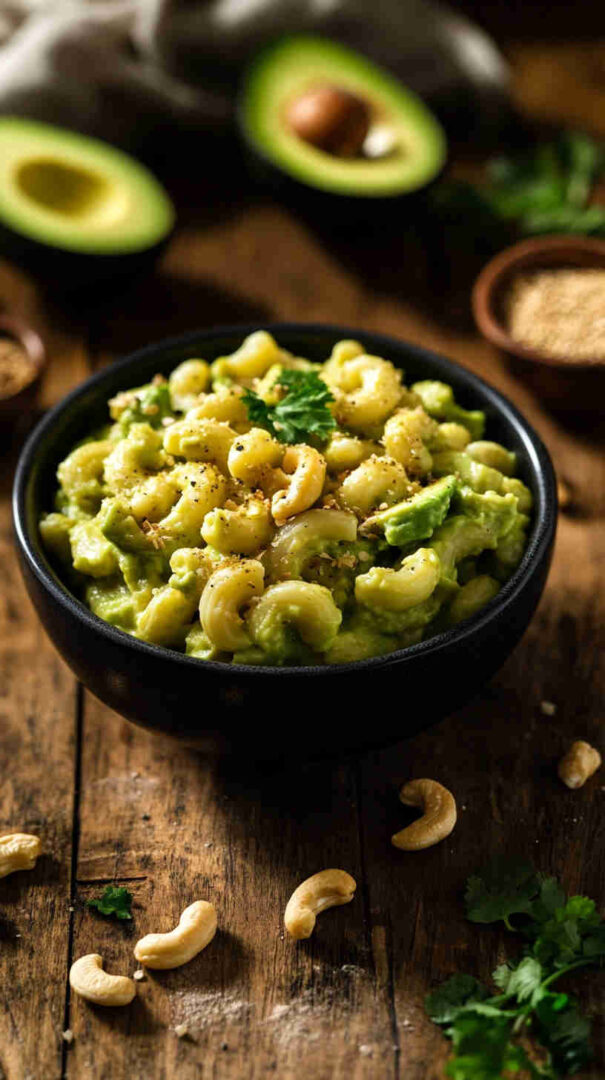 Serve right away for the brightest green color and freshest taste—avocado oxidizes quickly. Use very ripe avocados for best creaminess. Nutritional yeast is essential for that classic mac-and-cheese flavor—don’t skip or reduce significantly. Naturally gluten-free if using GF pasta. Perfect with a simple green salad or steamed broccoli on the side.