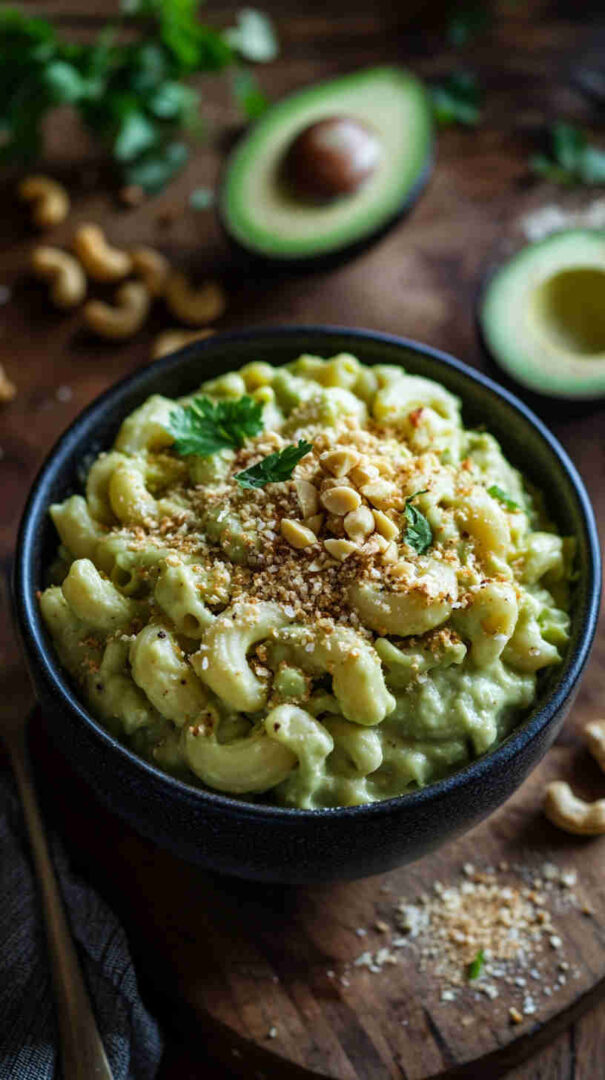 Creamy vegan avocado mac and cheese—cheesy, bright, dairy-free.