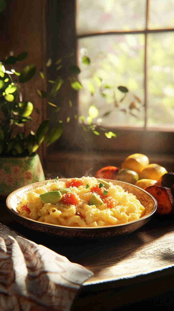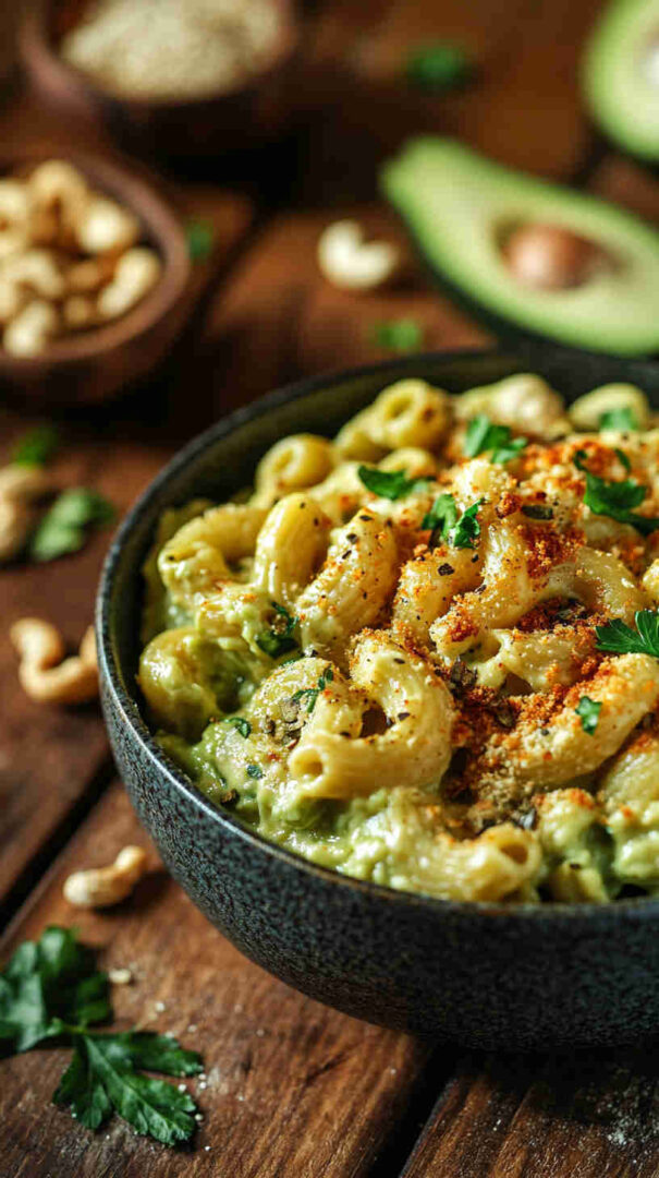 This vegan mac and cheese is proof that you don’t need dairy to achieve that ultra-creamy, nostalgic comfort-food hug. The avocado creates an unbelievably smooth, buttery sauce that coats every noodle perfectly, while nutritional yeast delivers that signature tangy, cheesy depth everyone craves.