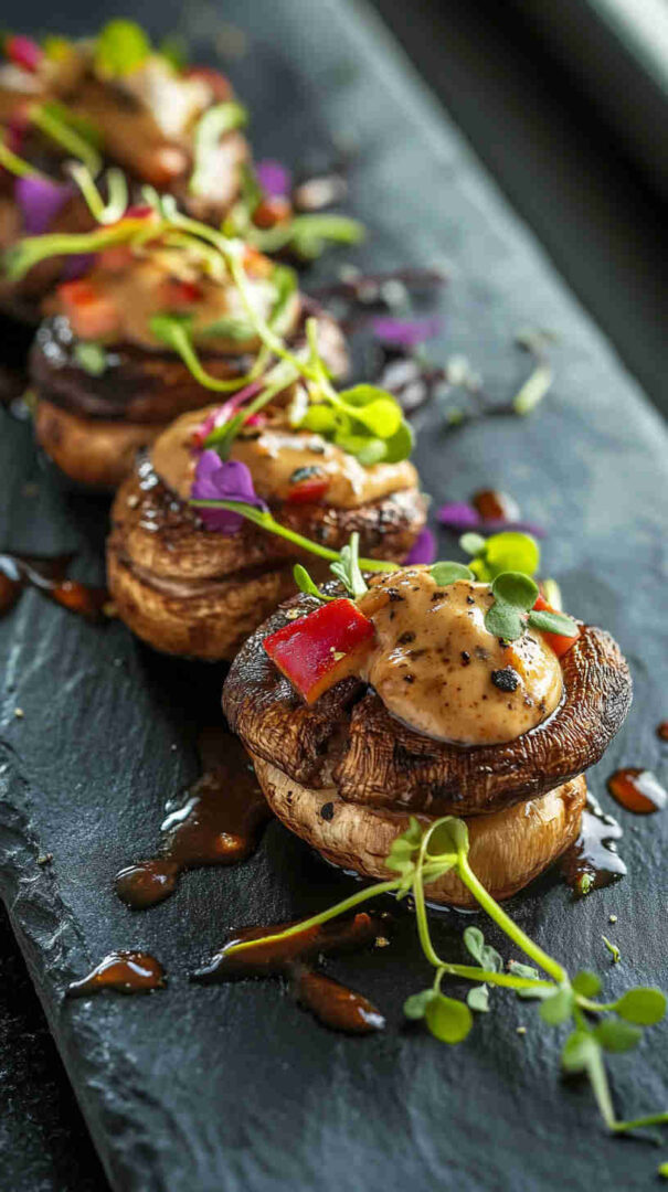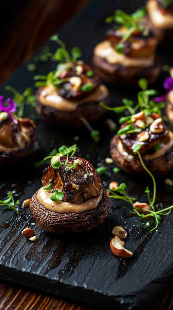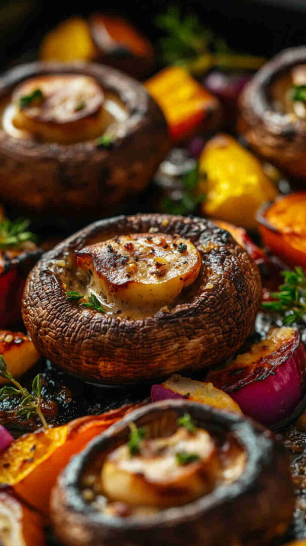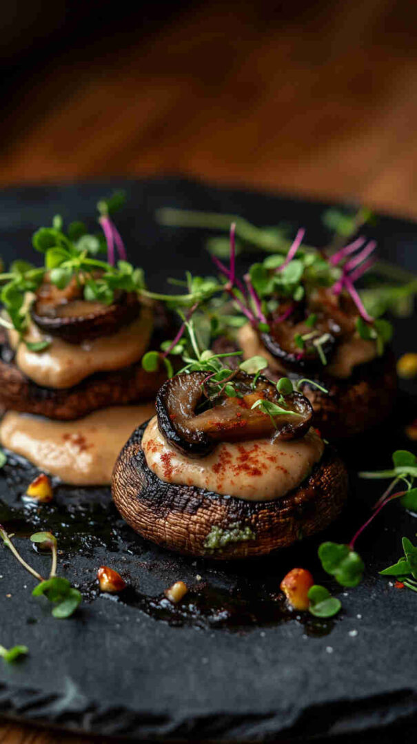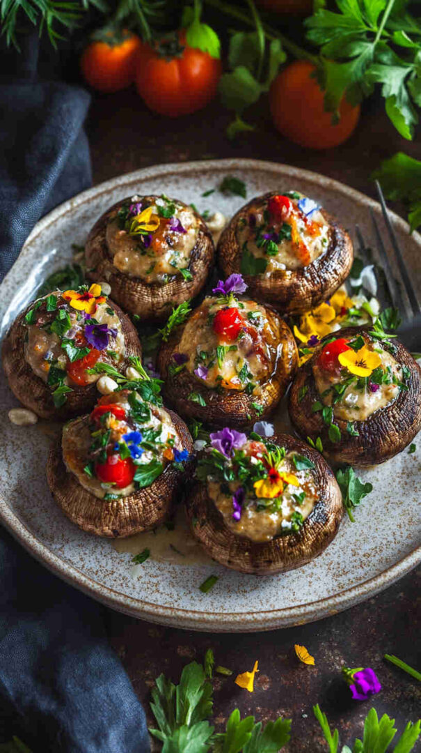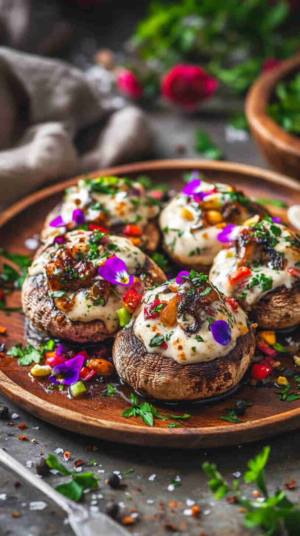 Indulge in hearty portobello or button mushrooms baked until juicy and golden, then generously coated in a rich, velvety cashew cream infused with garlic, herbs, and a touch of lemon. This plant-based dish delivers gourmet creaminess on a tight budget—perfect as a cozy main, side, or appetizer that’s naturally gluten-free and dairy-free.