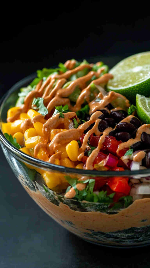 Fresh corn (or frozen fire-roasted) brings natural sweetness and char. Pico de gallo (tomato, red onion, jalapeño, lime, cilantro) provides fresh brightness and acidity. Avocado adds creamy healthy fats.