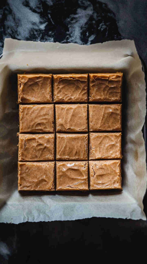 - Once solid, lift out using the parchment overhang, place on a cutting board, and slice into bite-sized squares with a warm knife — then share (or don't!) and enjoy every creamy, peanut-buttery bite.