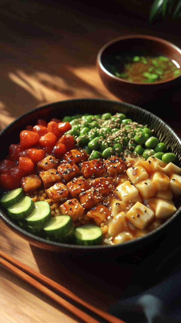 Powerlifters on a vegan diet will rave about this bowl because it delivers serious protein (around 35-40g per serving depending on portions) from multiple sources like tofu, quinoa, chickpeas, and edamame—ensuring a full amino acid profile for muscle synthesis and recovery after squats, deadlifts, or bench sessions.