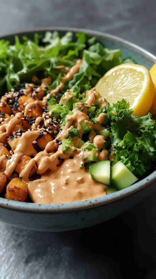 - Drizzle generously with tahini sauce, sprinkle extra sesame seeds or nutritional yeast if desired, grab a fork, and dig in—feel the power surging with every nutrient-packed bite!