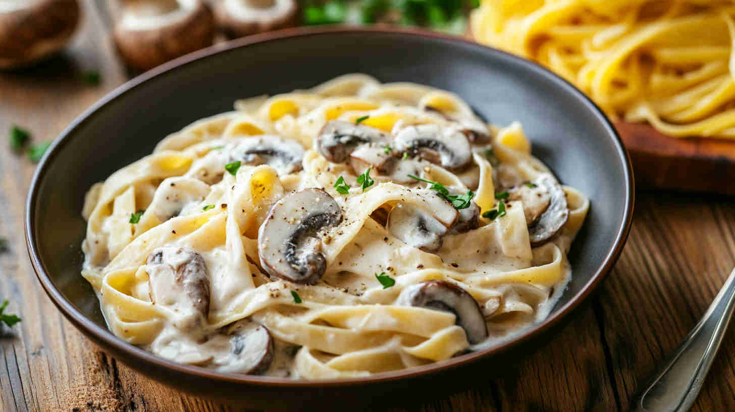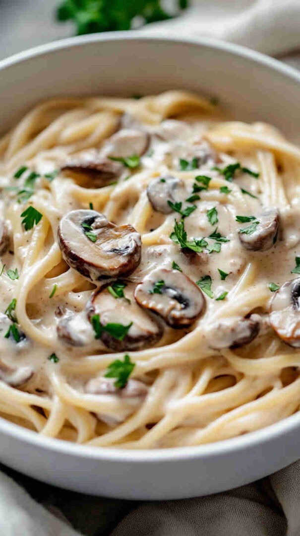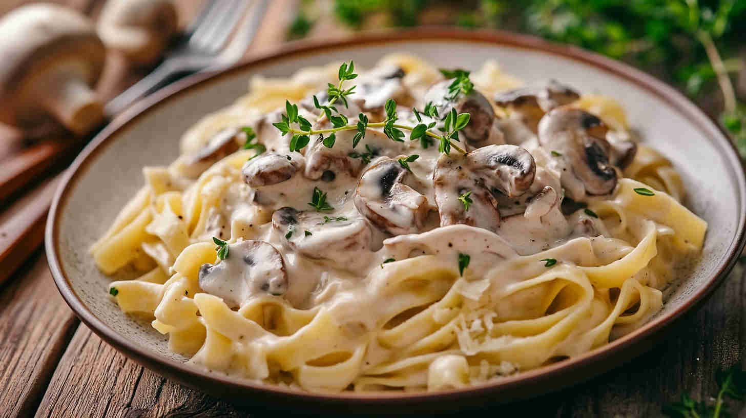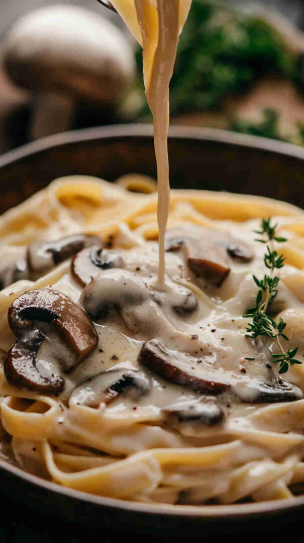 This Vegetarian Creamy Mushroom Pasta features tender fettuccine or tagliatelle coated in a luxurious, garlicky cream sauce made rich with sautéed mixed mushrooms, fresh thyme, a splash of white wine, and a touch of Parmesan (or nutritional yeast for vegan). Silky, earthy, and deeply comforting—ready in under 30 minutes for an elegant yet easy weeknight dinner.
