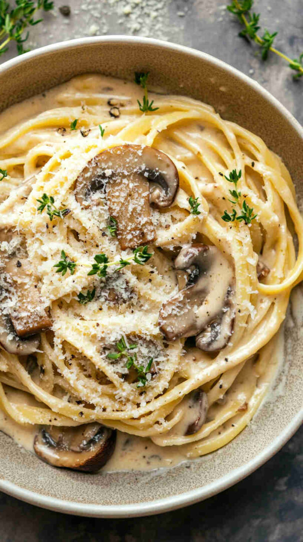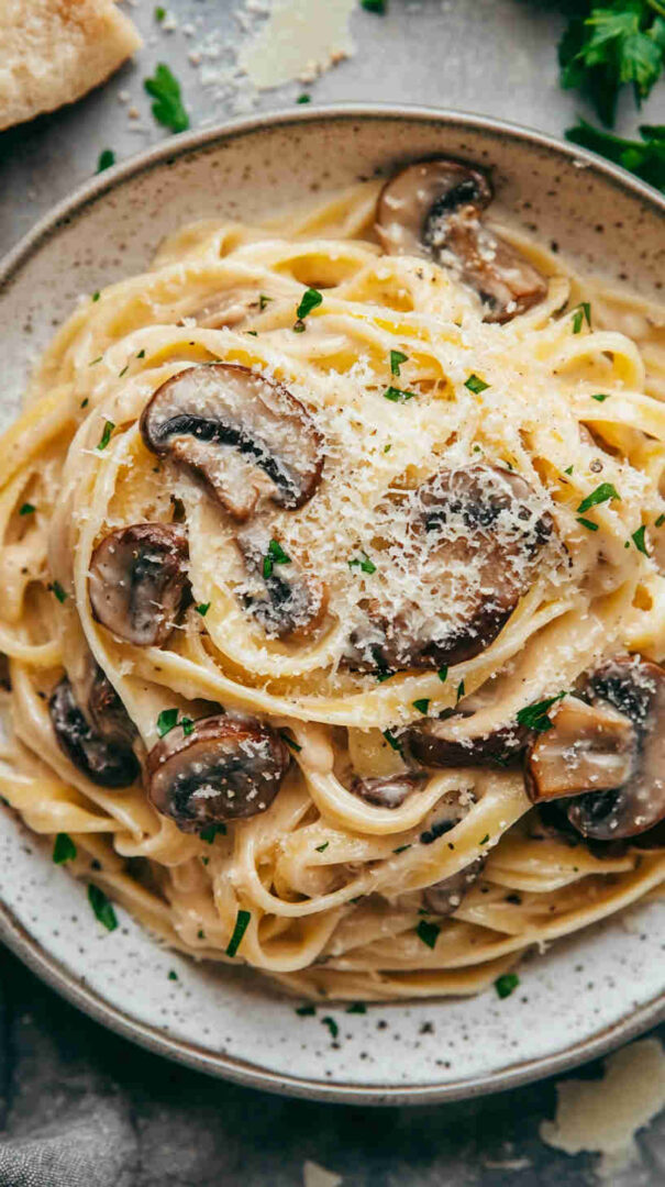 - Divide among warm bowls, finish with extra black pepper, a drizzle of good olive oil, fresh parsley or thyme, and an extra grating of Parmesan if desired—twirl your fork and savor this creamy, earthy, luxurious vegetarian mushroom masterpiece!