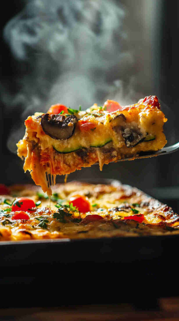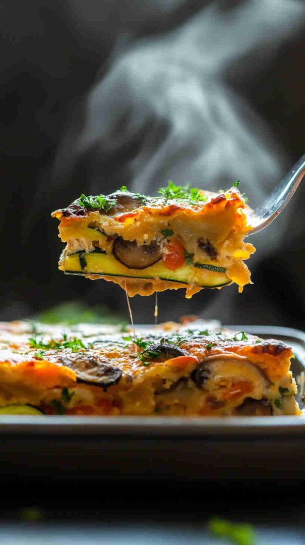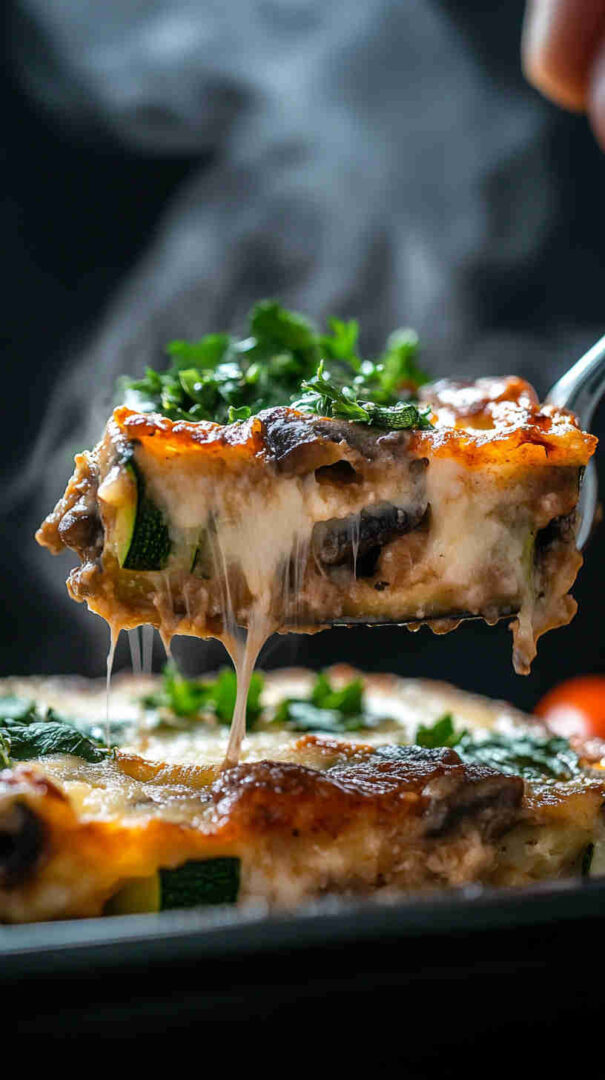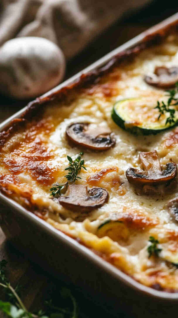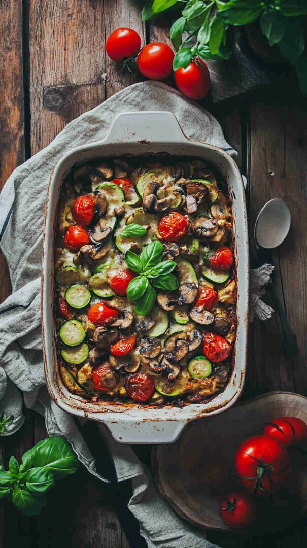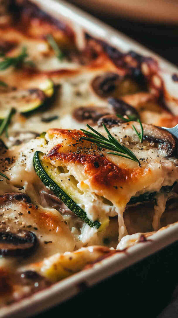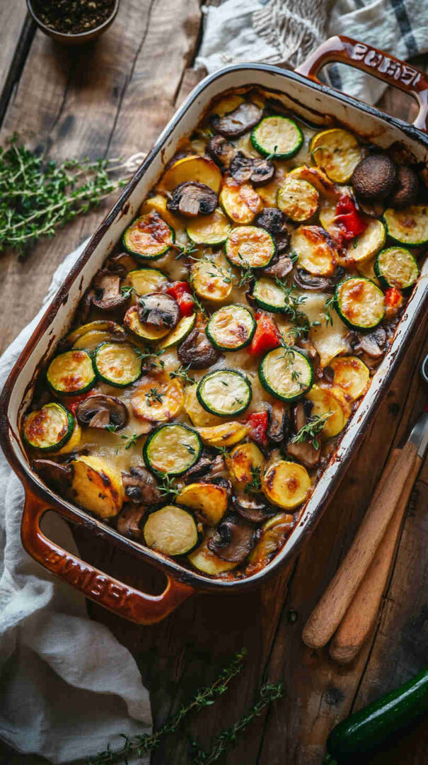 The Vegetarian Mushroom and Zucchini Casserole is a cozy, comforting Italian-inspired baked dish layered with tender sliced zucchini, earthy sautéed mushrooms, caramelized onions, garlic, fresh herbs like thyme and basil, and a creamy ricotta-Parmesan mixture or light tomato sauce base.