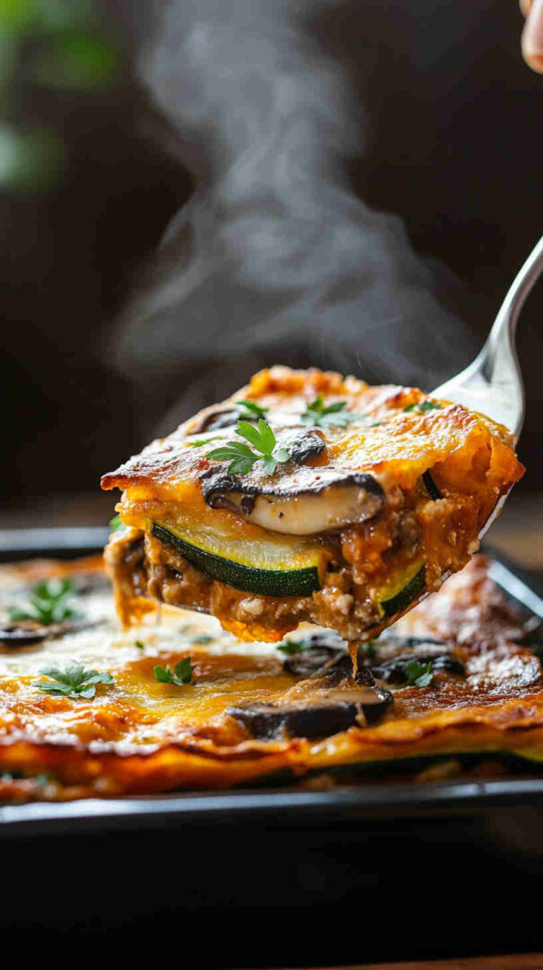 Slice zucchini evenly (about ¼-inch thick) and lightly salt to draw out moisture—pat dry before layering to prevent sogginess. Sauté mushrooms on high heat without overcrowding for golden browning and concentrated flavor.