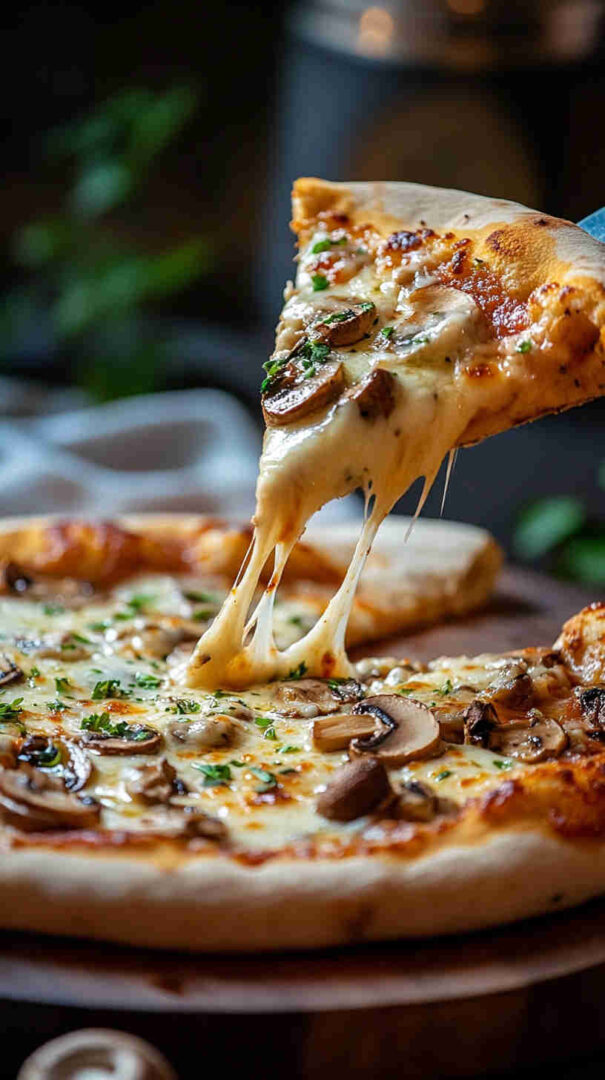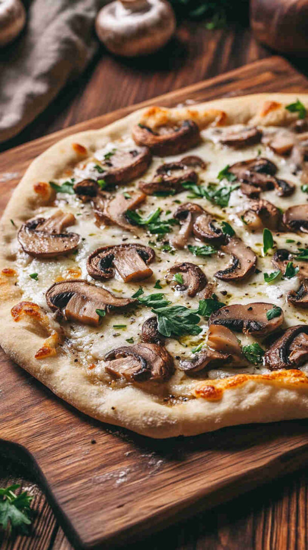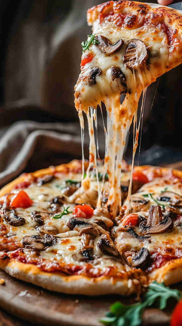 Finished with a drizzle of extra-virgin olive oil and optional Parmesan or truffle oil, this meat-free pizza delivers deep earthy flavors, melty cheese pulls, and perfect balance in every slice—ideal for cozy dinners or casual gatherings.