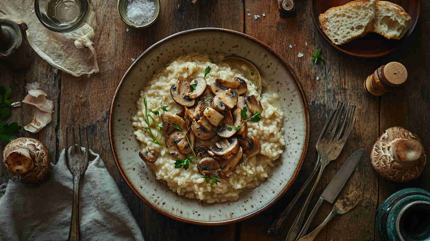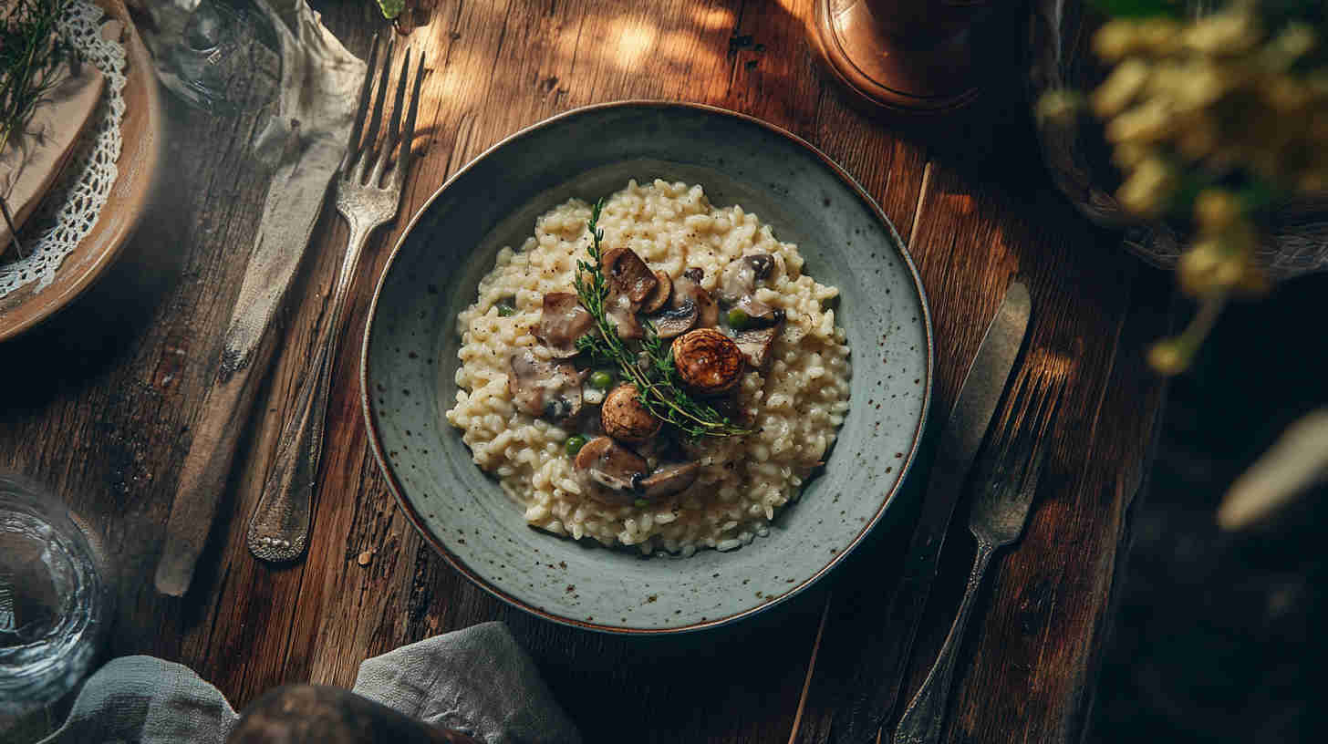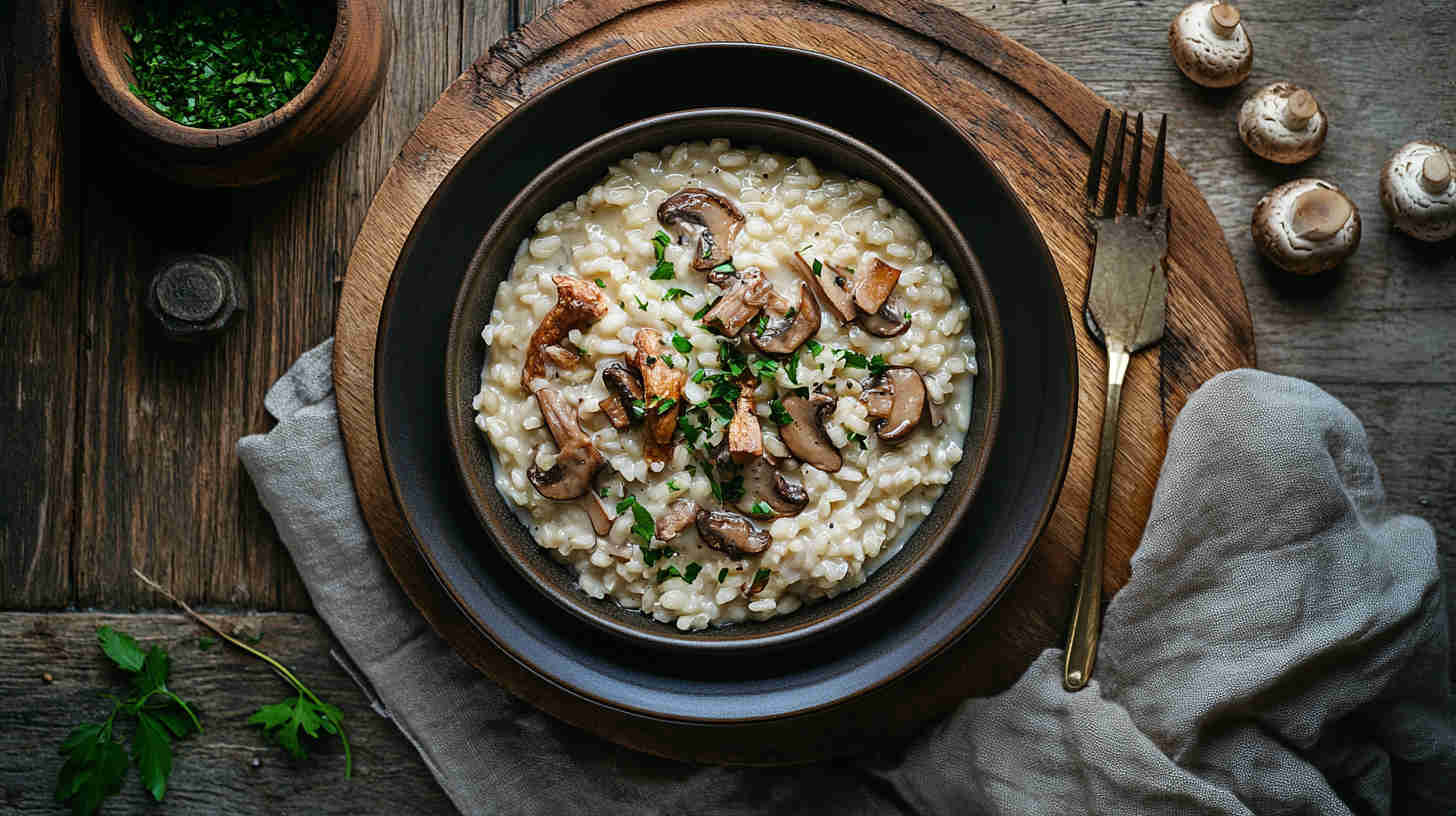 Creamy Arborio rice with garlicky mushrooms, Parmesan, and herbs—luxurious vegetarian Italian comfort!