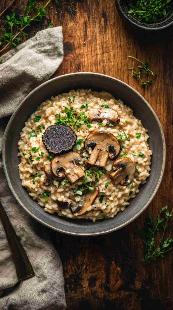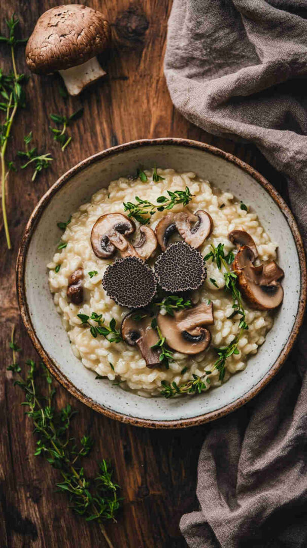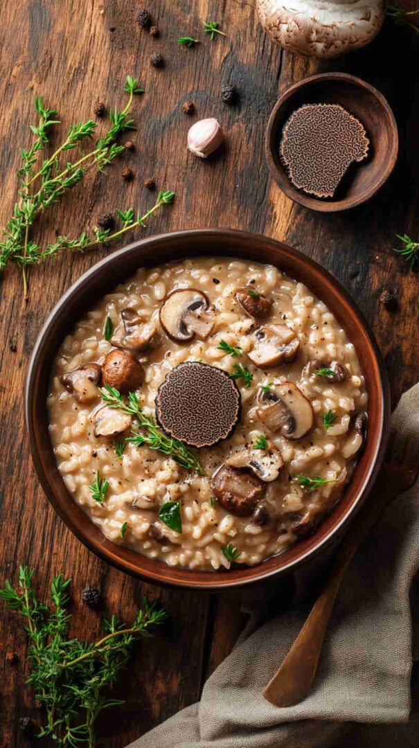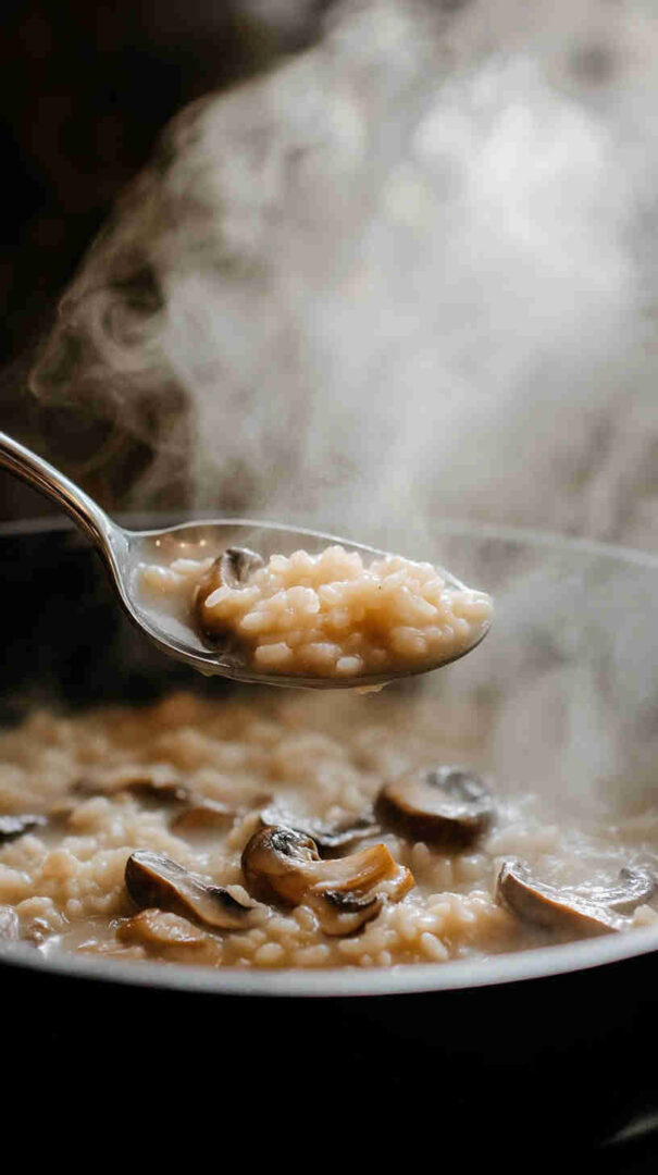Finish with “mantecatura”—vigorous stirring of cheese and butter off heat for ultra-silky finish. Taste and season at every stage—mushrooms and broth vary in saltiness. Don’t rush—true risotto takes 18–22 minutes of active time. For extra depth, soak dried porcini and use soaking liquid in broth.