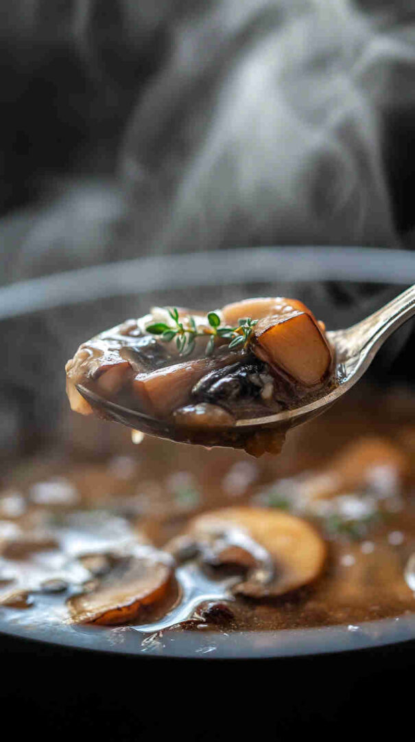 For French-style, finish with a splash of cognac or sherry. Top with crispy shallots, croutons, or vegan bacon bits for crunch. Keep mushroom volume generous—they’re the heart of the dish.
