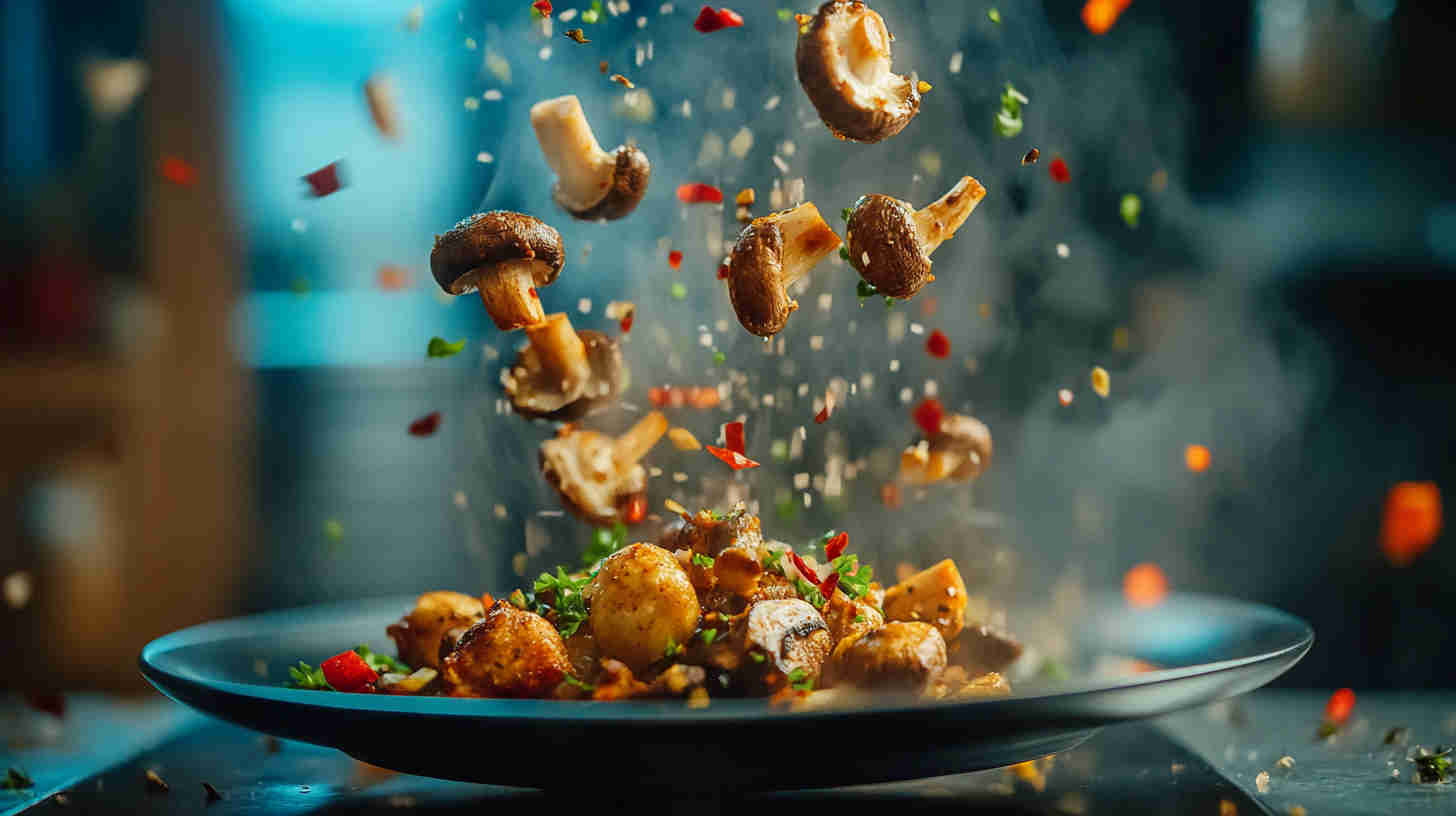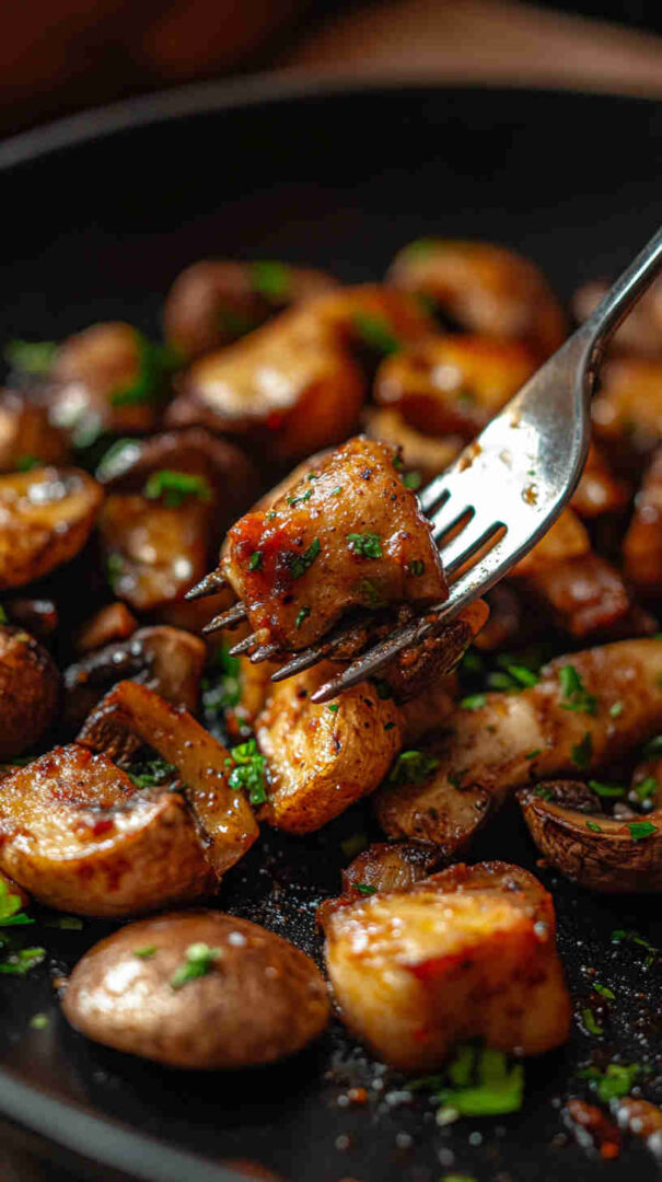 - Add hot fried mushrooms to the skillet—toss quickly over medium heat 30–60 seconds until evenly coated and sauce clings.
