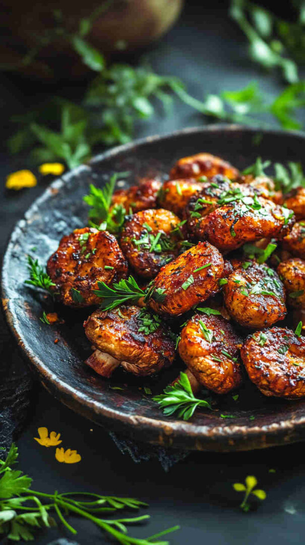 These Vegetarian Spicy Mushroom Bites are dangerously addictive—crispy on the outside, juicy and meaty inside, and coated in a glossy, spicy-sweet sauce that makes you reach for one after another.