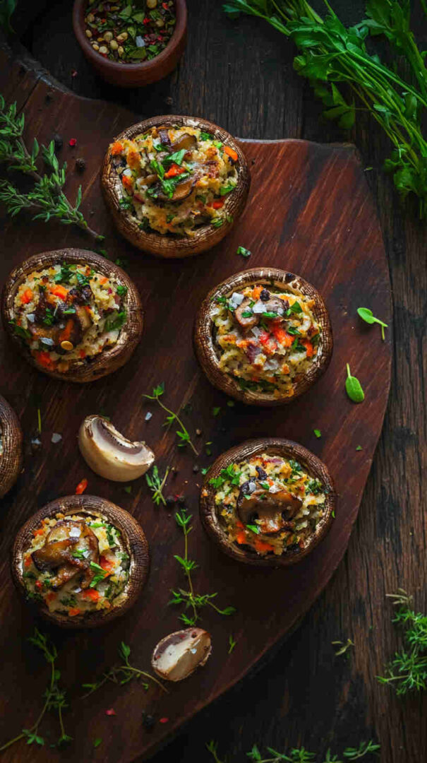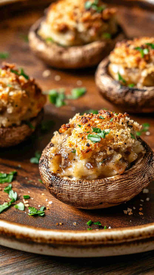 They’re naturally vegetarian (easily made vegan), packed with vegetables and herbs for freshness, and deliver that irresistible contrast of tender mushroom, creamy cheese, and crispy breadcrumb topping.