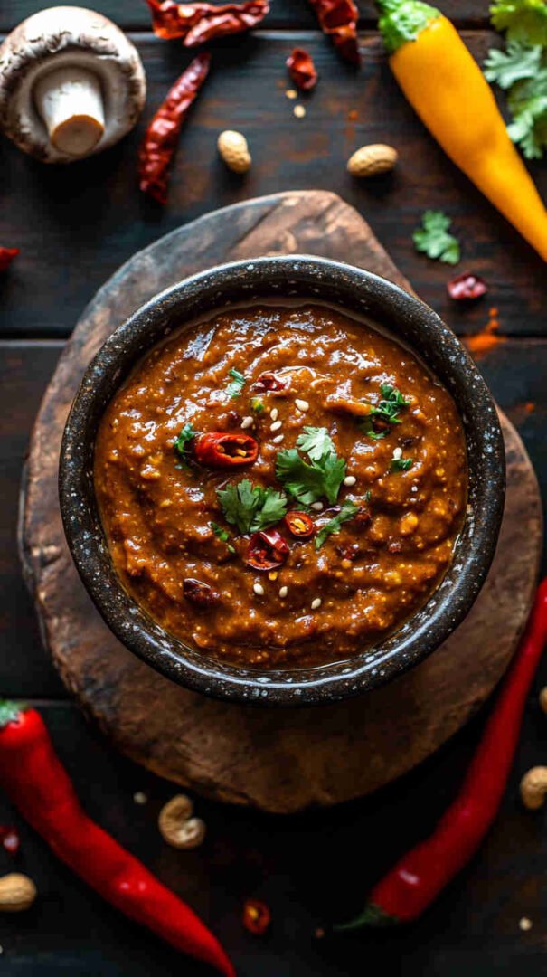 Creamy West African-inspired peanut sauce with earthy mushrooms—rich, spicy, vegan comfort food perfect over rice.