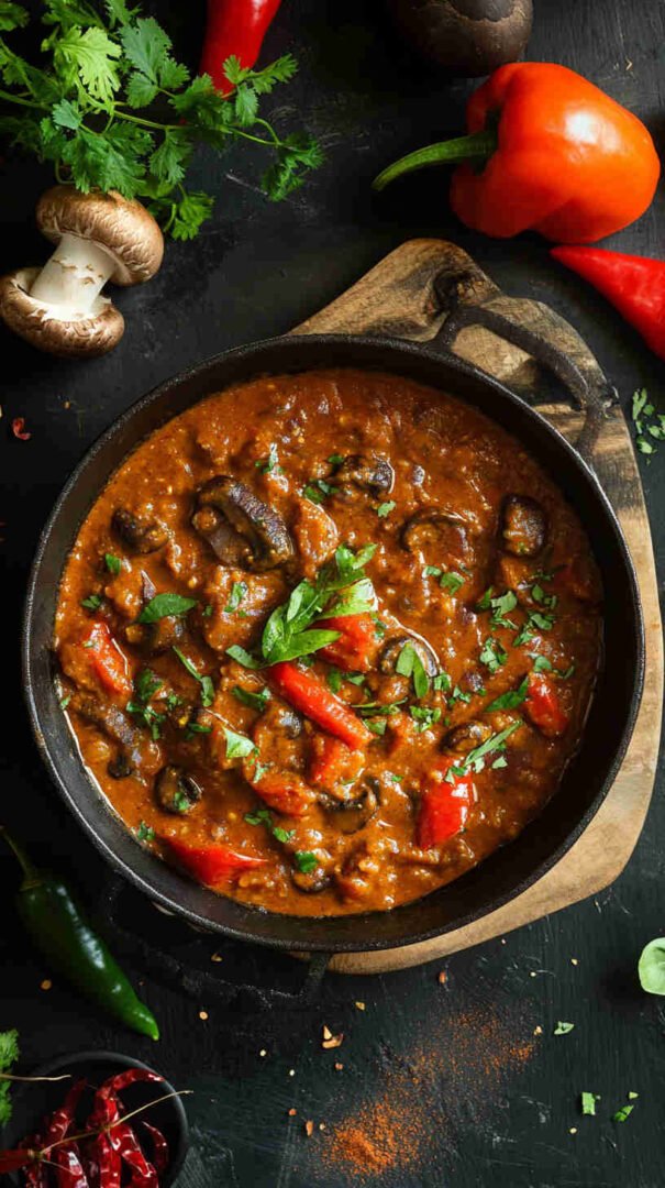 Onion, garlic, and ginger form the aromatic base, while tomato paste brings tangy depth and color. Warm spices such as cumin, coriander, and a touch of cinnamon or cloves evoke the region’s flavor profile. Vegetable broth keeps it vegan and builds the saucy consistency, and a hint of chili (fresh or flakes) adds customizable heat. Fresh herbs like cilantro for garnish brighten the dish.