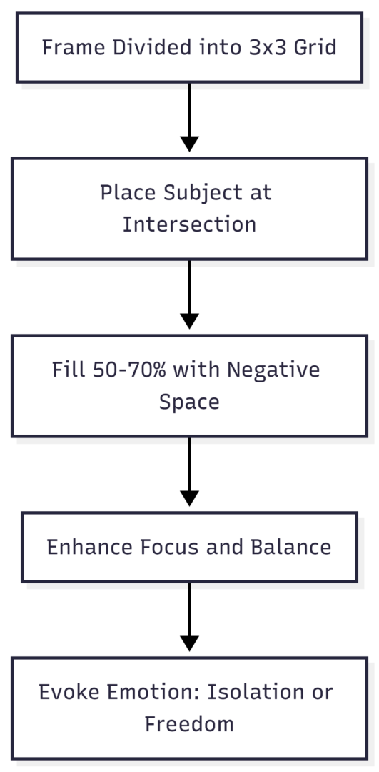 No strict rules exist—negative space is stylistic. The key is ensuring it’s not “dead” space but adds to the narrative. Strong subjects hold attention amid emptiness, while clean edges prevent minor distractions from breaking the flow.