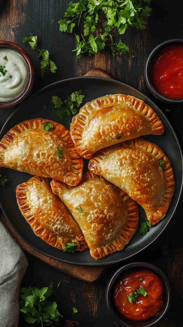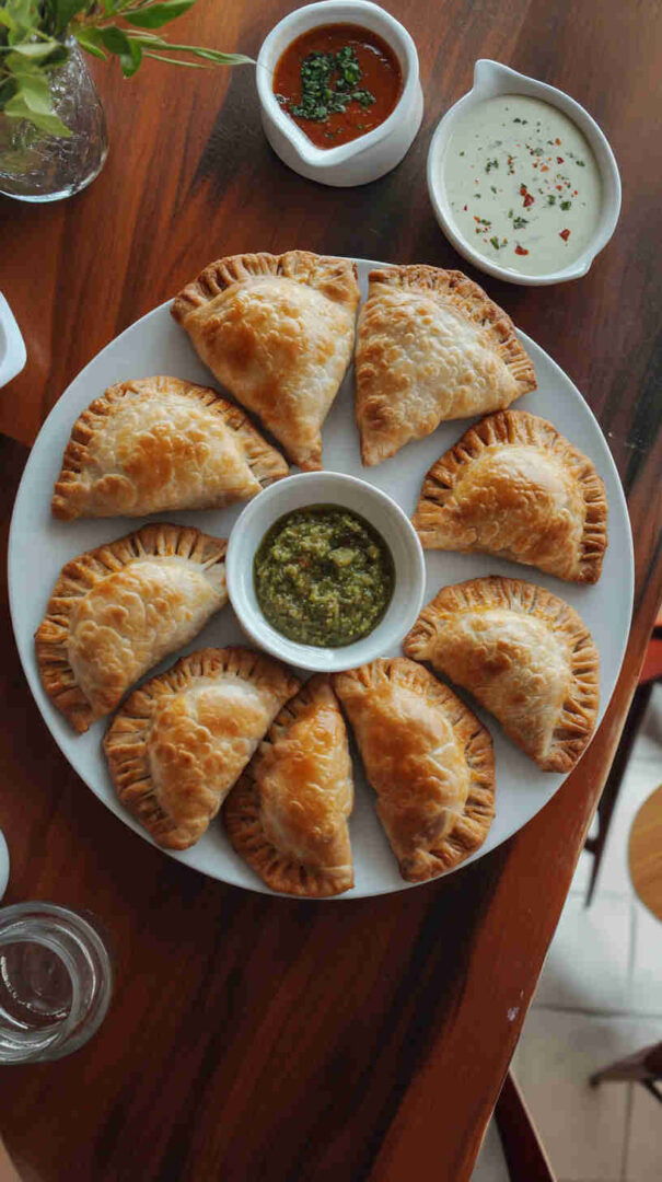 Use a sharp cutter or bowl to make perfect circles; reroll scraps gently but minimally to avoid toughness. Don’t overfill—about 2 tablespoons per empanada prevents bursting. Seal edges with a fork for a pretty crimp and to keep filling inside.